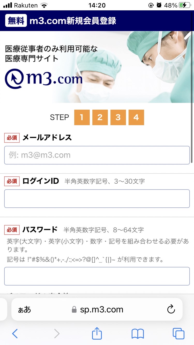 まず、以下からMedpeerに登録します。