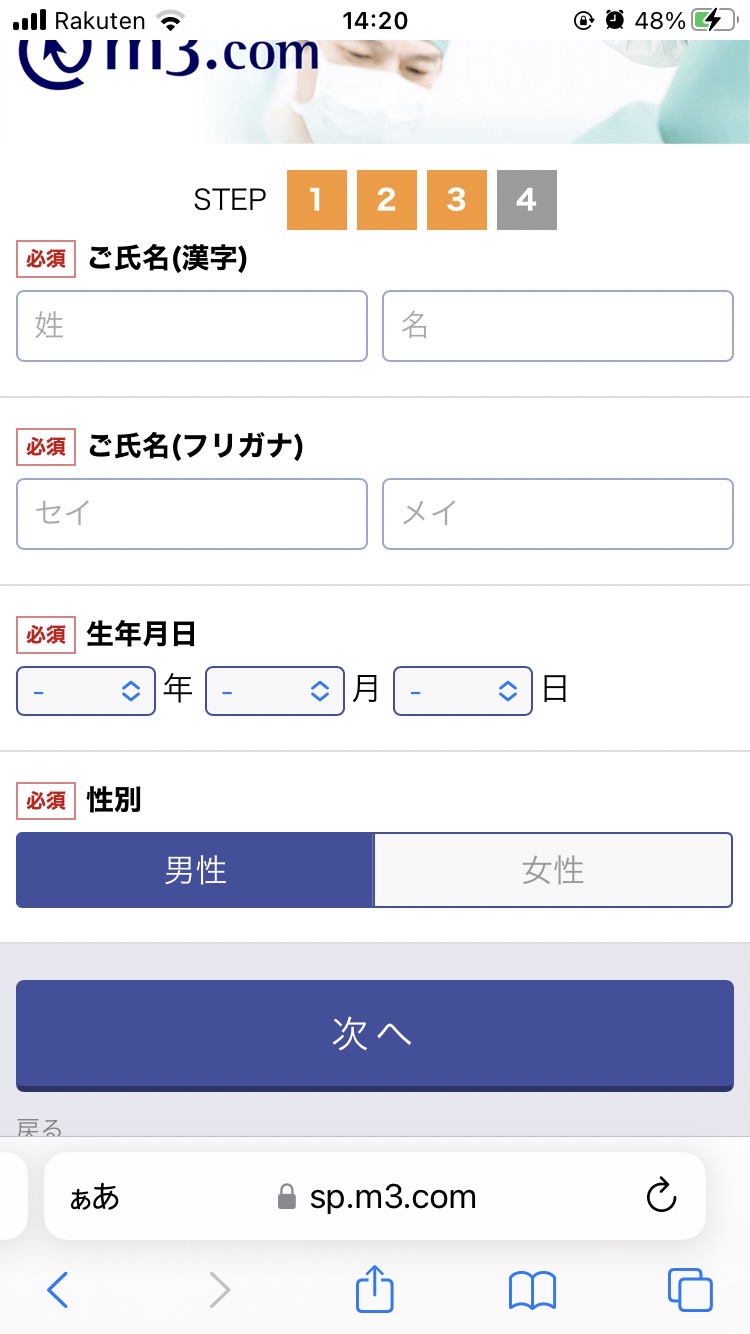 3. 氏名・生年月日・性別を入力する