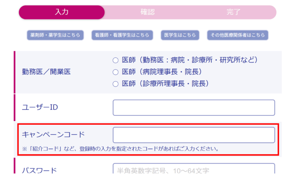 医師だけではなく、医学生・看護師・薬剤師も登録ができます。