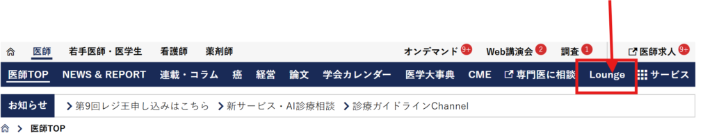 Loungeとは、製薬会社や企業担当者の方にメッセージを送ってコミュニケーションをとれるツールのこと。